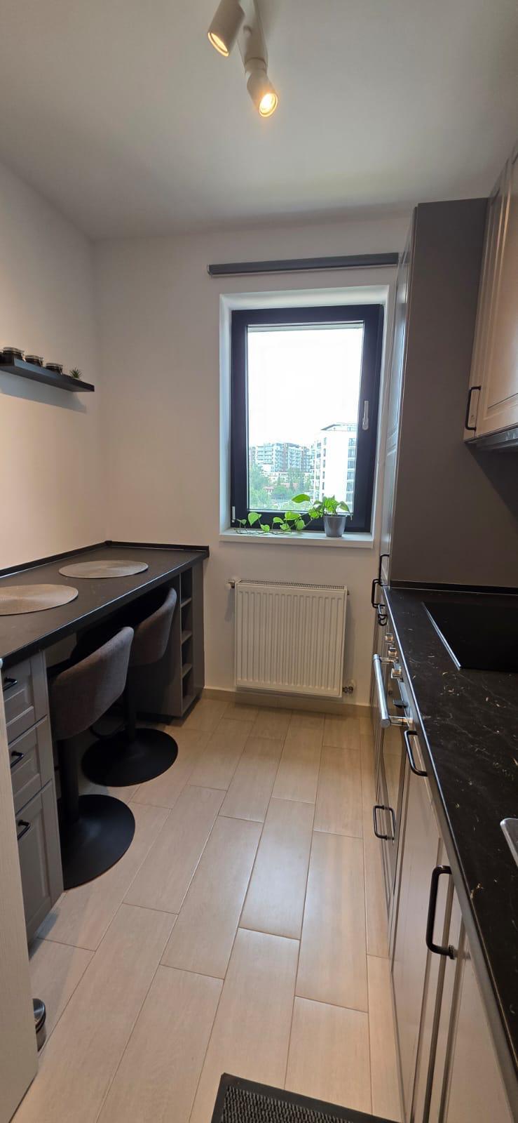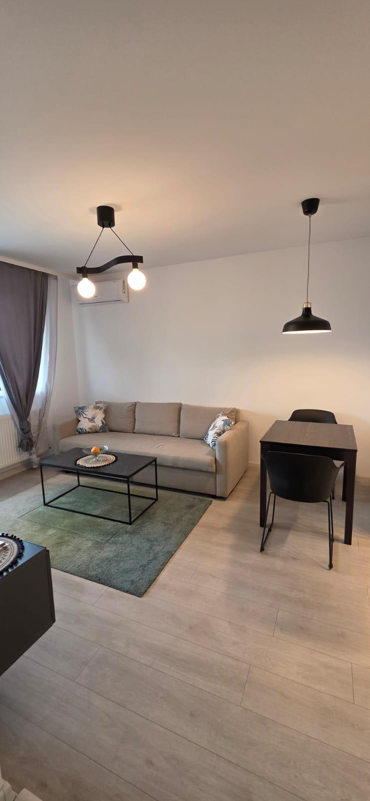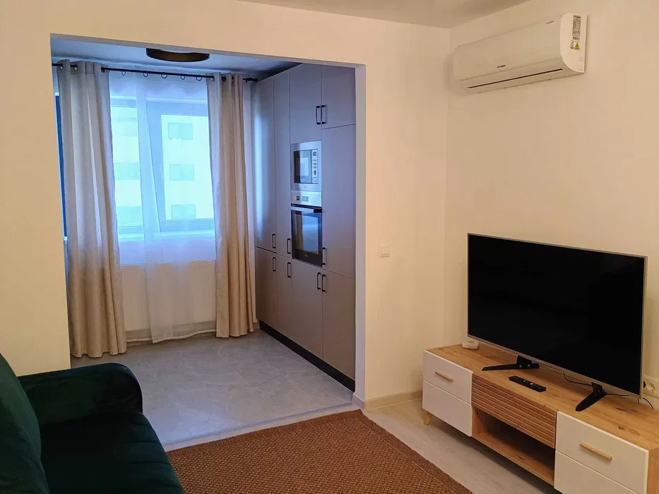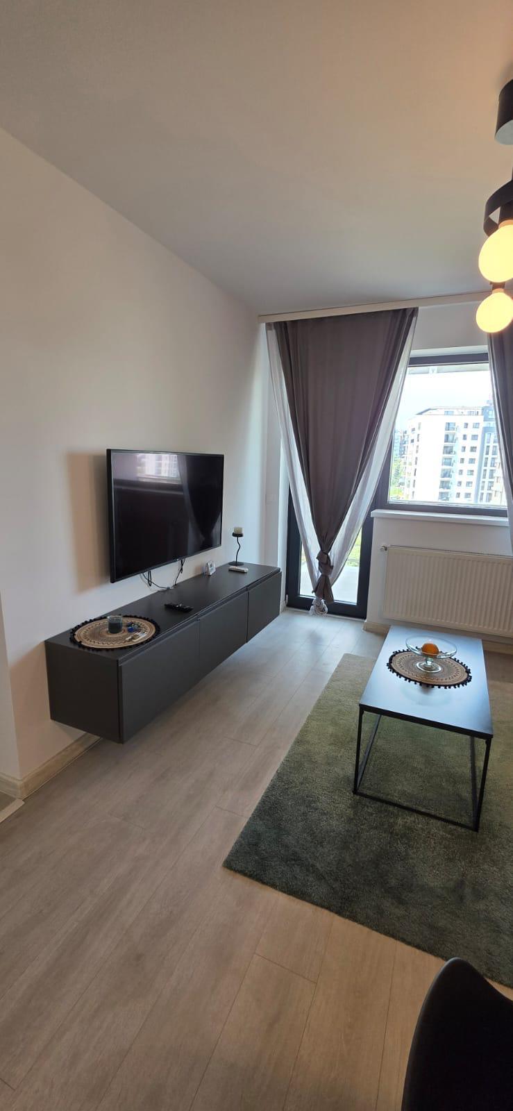 Inchiriez apartament de 2 camere (et.5/11): dormitor si living, bucatarie open space, baie, mobilat si utilat.Electrocasnice: masina de spalat rufe, plita, hota, cuptor electric, cuptor cu microunde, frigider, AC, centrala si TV.Include parcare terana, langa scara blocului. Pret: 590 € Contact: +40 755 225 026 (si whatsapp)